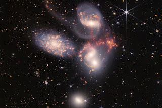 Mozaika zdjęć Kwintetu Stephana uzyskanych Kosmicznym Teleskopem Jamesa Webba. Źródło: NASA